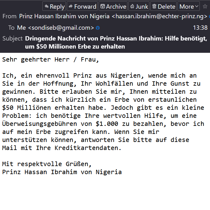sebastiansonderling Bekommt ihr auch immer so lustige Spam-Mails? Wer fällt auf sowas rein? 😂 #prinzhassan #spam